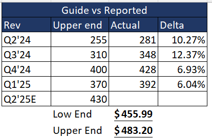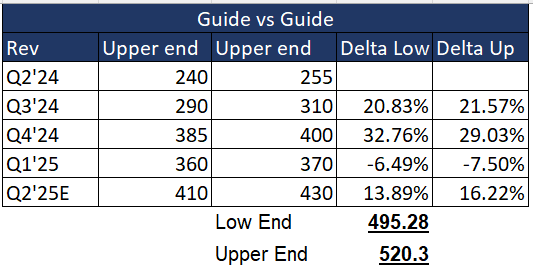 Based on that, I would expect a Q3 revenue guide in the range of $496–$520M.